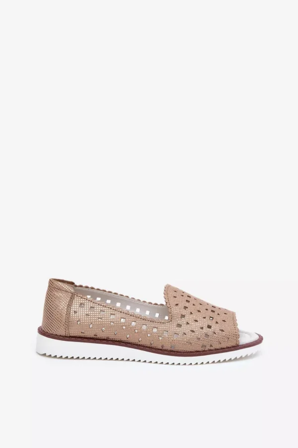 Moteriskos balerinos pagamintos iš natūralios odos. Įmontuotos ant subtilios platformos, jos užtikrina patogumą visą dieną. Atvirų priekiu modelis. Ažūrinis raštas suteikia ypatingo žavesio ir lengvumo. Odinis vidpadis užtikrina tinkamą amortizaciją ir patogumą dėvint. Šios balerinos puikiai tiks tiek elegantiškiems, tiek kasdieniams deriniams. Rinkdamiesi dydį, vadovaukitės dydžių lentele.