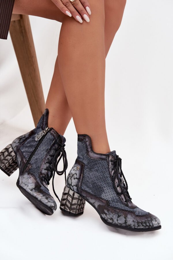Moteriški „Maciejka“ aulinukai, pagaminti iš natūralios odos, yra pasiūlymas moterims, vertinančioms aukštą kokybę ir unikalų stilių. Modelis išsiskiria originalia išvaizda, kuri patraukia dėmesį ir suteikia charakterio bet kokiai stilizacijai. Stabilus stulpelio formos kulniukas užtikrina patogumą dėvint ir subtiliai lieknina figūrą. Šnyrimo ir praktiško užtrauktuko derinys leidžia lengvai pritaikyti batus prie pėdos. Tai elegantiški ir funkcionalūs aulinukai, puikiai tinkantys rudens-žiemos sezonui. Rinkdamiesi dydį, prašome vadovautis dydžių lentele.