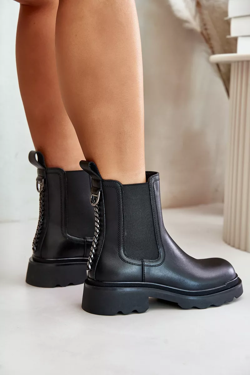 Moteriški įsispiriami aulinukai, pagaminti iš natūralios odos. Su plokščiu kulnu. Apvalūs priekiai. Vidus apšildytas aulinukų kilimėliu. Šis modelis išsiskiria dekoratyvine grandinėle gale. Renkantis dydį, prašome vadovautis dydžių lentele.