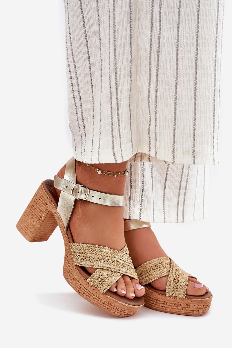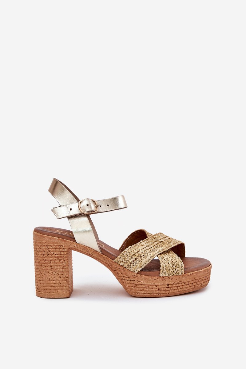 Moteriški sandalai, pagaminti iš natūralios odos, ant stabilaus stulpelio formos kulno, yra stiliaus ir patogumo derinys. Priekyje dėmesį patraukia du persipynę dirželiai su efektyviu pynimu, suteikiantys visumai originalumo. Minkštas vidpadis užtikrina komfortą net ilgai nešiojant, o sagties užsegimas su reguliuojamu dirželiu leidžia idealiai pritaikyti batą prie pėdos. Tai puikus pasirinkimas vasaros dienoms, tiek elegantiškoms, tiek kasdienėms stilizacijoms. Rinkdamiesi dydį, vadovaukitės dydžių lentele.