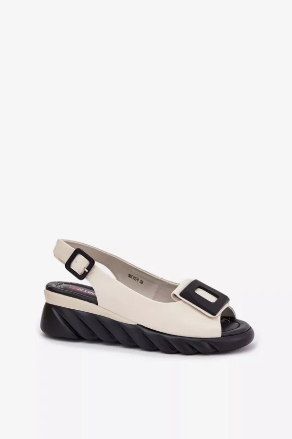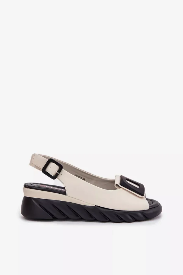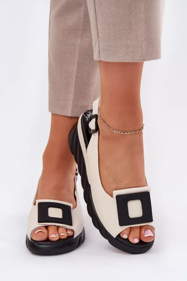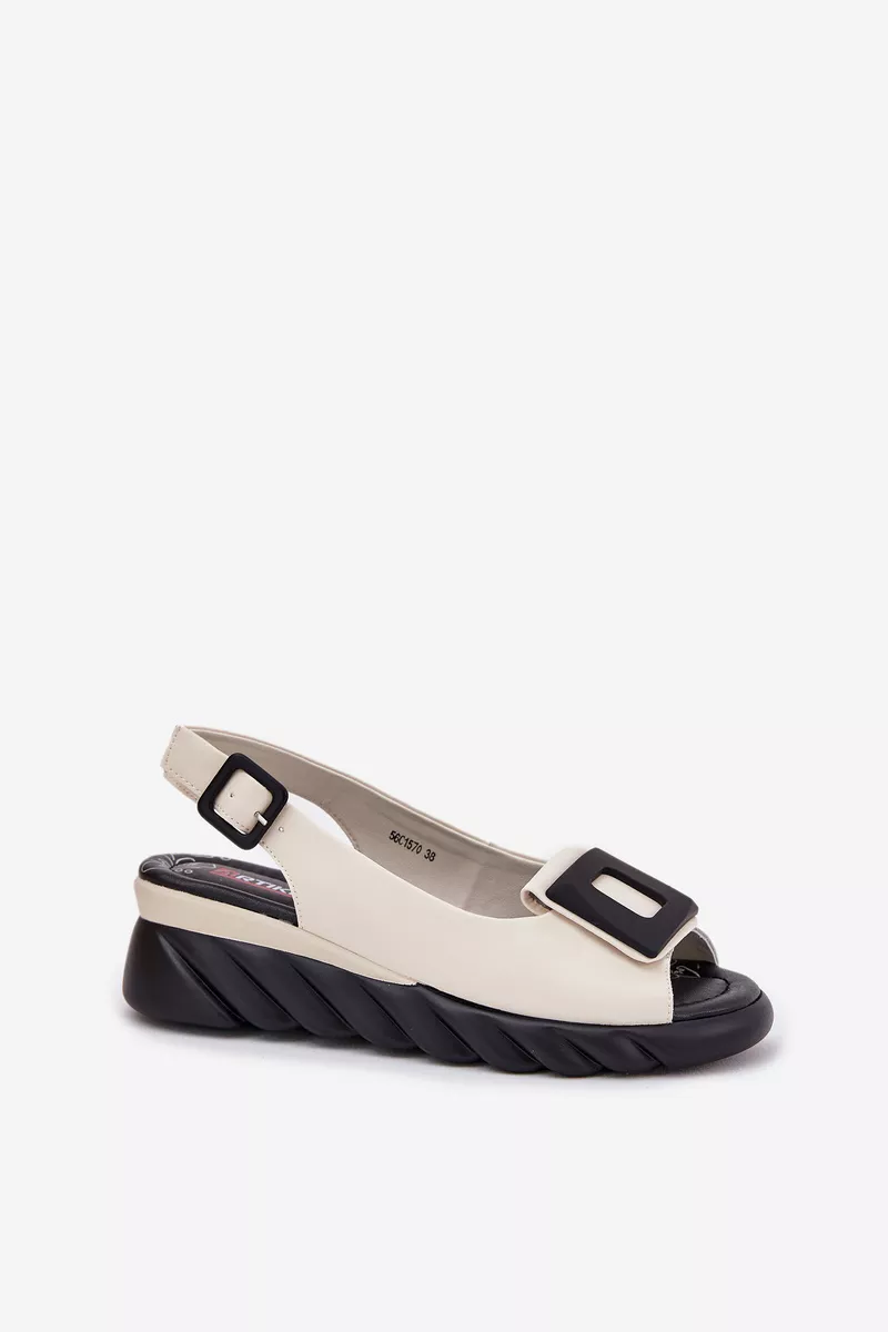 Pristatome prabangius moteriškus odinius sandalus su platforma ir dekoracijomis – Artiker 56C1570. Šie smėlio spalvos sandalai yra elegantiškas ir praktiškas pasirinkimas šiltajam sezonui. Modelis išsiskiria unikaliu dekoratyviniu elementu priekyje, suteikiančiu išskirtinumo bet kuriam deriniui.