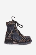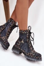 Maciejka aulinukai moterims – tai pasiūlymas moterims, mėgstančioms originalų stilių ir patogumą. Pagaminti iš natūralios odos, pasižymi ilgaamžiškumu ir išskirtine išvaizda, kuri patraukia akį. Modelis yra ant platformos su plokščiu kulnu, todėl užtikrina stabilumą ir dėvėjimo komfortą. Batai turi tiek praktišką raištelių suvarstymą, tiek užtrauktuką, todėl juos lengva pritaikyti prie pėdos ir greitai užsidėti. Ant aulo yra dirželiai, sujungti dekoratyviniu elementu, suteikiančiu visumai charakterio ir modernios išvaizdos. Tai aulinukai, kurie puikiai tiks kasdienėms stilizacijoms, ypač moterims, vertinančioms drąsius ir stilingus akcentus.
