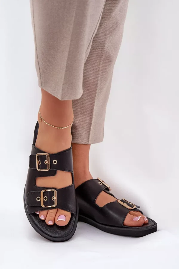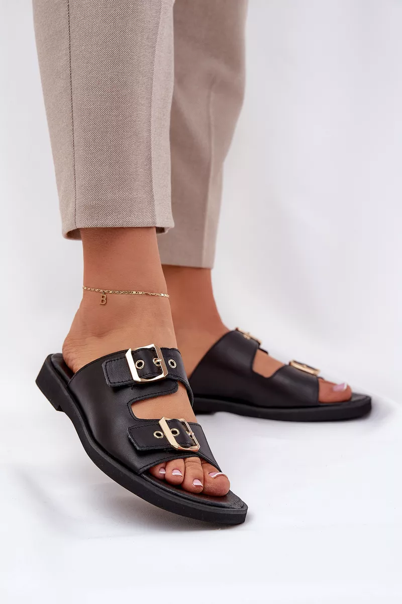Elegantiškas pasiūlymas moteriškų odinių basučių ant plokščio kulno, kuriame derinamas komfortas ir modernus stilius. Jos turi dvi auksines sagtis su reguliuojamais dirželiais, kurie ne tik užtikrina idealų prigludimą prie pėdos, bet ir yra madingas akcentas, suteikiantis subtilaus blizgesio. Dėl plokščio kulno šios basutės yra patogios ir stabilios, puikiai tinka kasdienai, tiek prie laisvališko, tiek prie elegantiškesnio stiliaus. Odinis aulas garantuoja ilgaamžiškumą ir komfortą, todėl šios basutės bus puikus pasirinkimas karštomis dienomis.