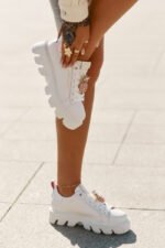 Moteriški sportbačiai pagaminti iš natūralios odos. Įmontuoti ant platformos, jie suteikia stabilumo ir patogumo visą dieną. Apvalūs priekiai užtikrina komfortą, o ananaso formos sagė suteikia papildomą puošmeną ir išskirtinį charakterį. Odinis, minkštas vidpadis rūpinasi pėdų patogumu, o stilingas kirpimas daro šiuos sportbačius puikiu įvairių stilių papildymu. Renkantis dydį, prašome vadovautis dydžių lentele.