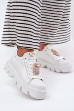 Odinės sportbačiai su dekoratyviu ananaso sagu CheBello 4651 Balti