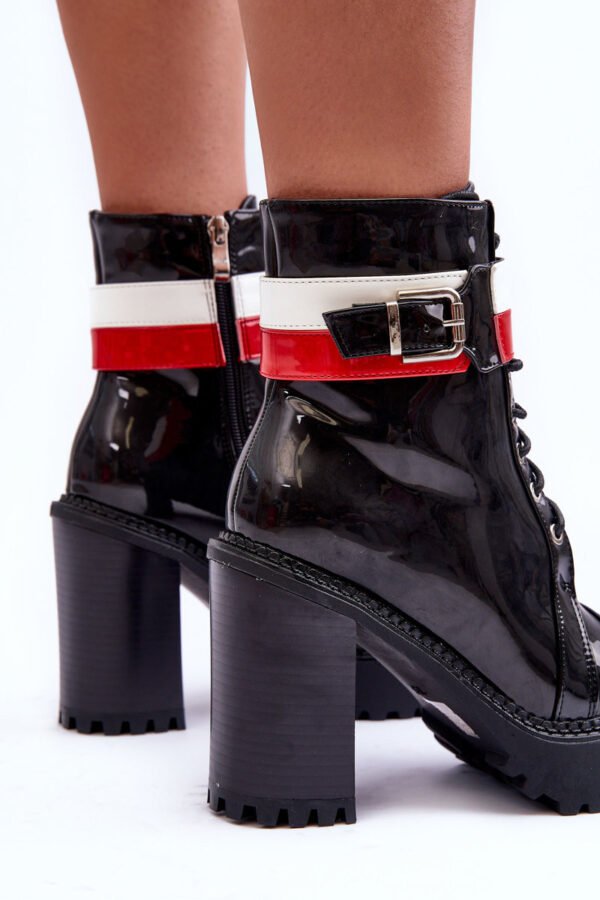 Moteriški batai ant masyvios platformos ir aukšto, stabilaus stulpo formos kulno. Pagaminti iš ekoodos. Segami užtrauktuku bato vidinėje pusėje ir papildomai šnarinami. Kulnas yra sustiprintas. Viršutinėje auliuko dalyje yra du sujungti dirželiai. Medžiaginis vidpadis užtikrins patogų batų dėvėjimą. Būtinai turėkite juos! Renkantis dydį, prašome vadovautis dydžių lentele.