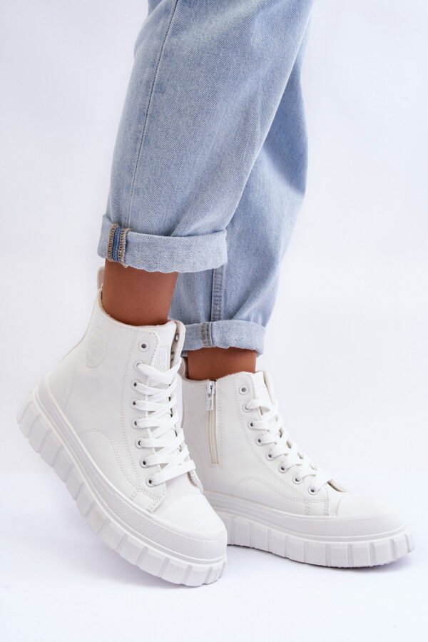 Aukšti moteriški Big Star teniso bateliai, pagaminti iš eko odos. Įtaisyti ant masyvios platformos. Padas yra neslystantis. Šis modelis užsegamas šoniniu užtrauktuku, be to, turi raištelius. Vidus apšildytas dirbtiniu kailiu. Ant bato aulas yra prekės ženklo logotipas ir siūlės. Renkantis dydį, prašome vadovautis dydžių lentele.