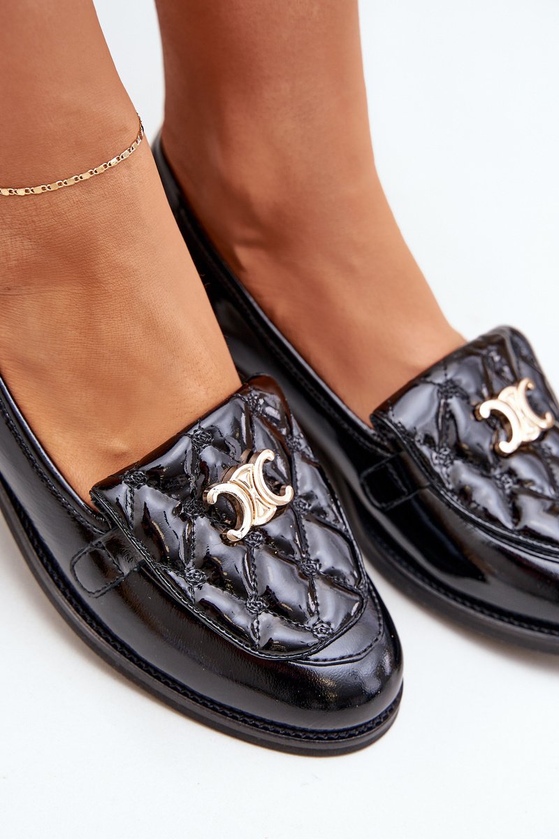 Odiniai lakiniai batai su aukso puošyba Laura 2927 Juodi