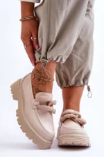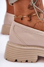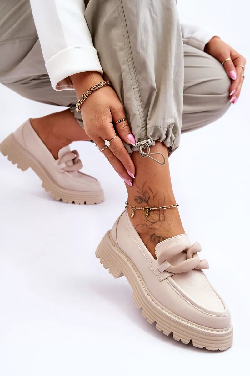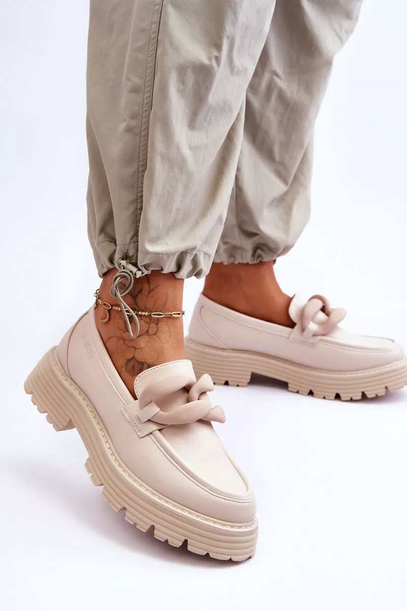 Madingi pusbačiai – mokasinai pagaminti iš ekologiškos odos. Montuojami ant platformos ir plokščio kulno. Mokasinai turi puošnią grandinėlę priekyje. Eko odos vidpadis užtikrins patogų batų naudojimą. Be to, šių batų kulnas yra sutvirtintas. Renkantis dydį, prašome vadovautis dydžių lentele.