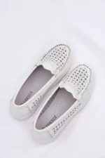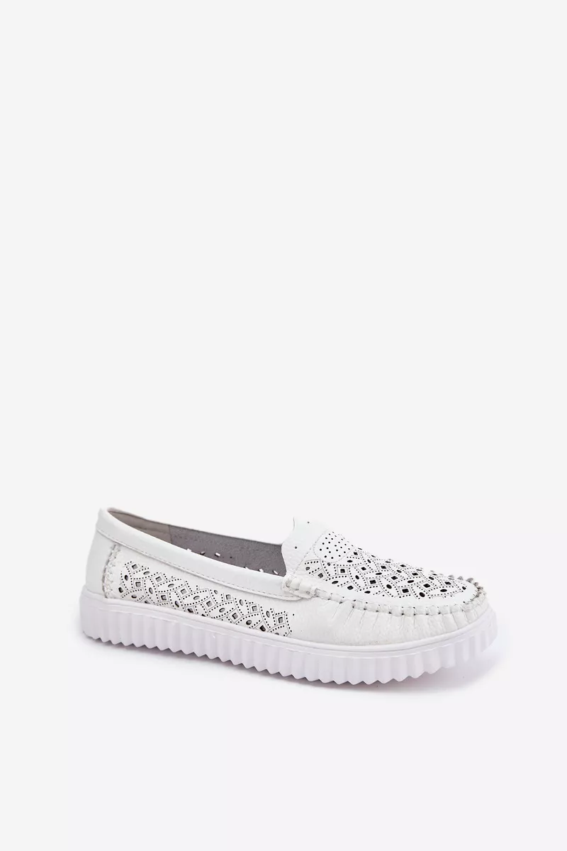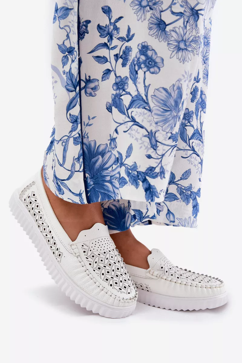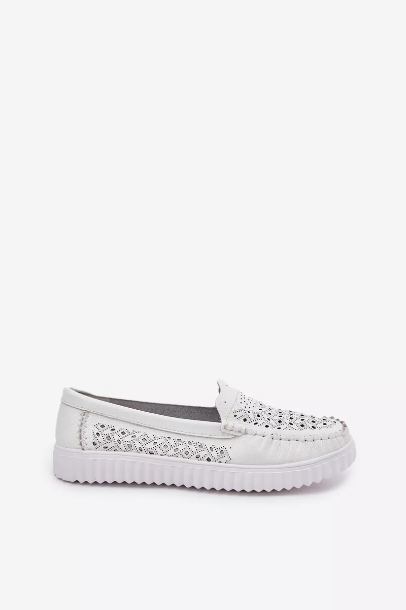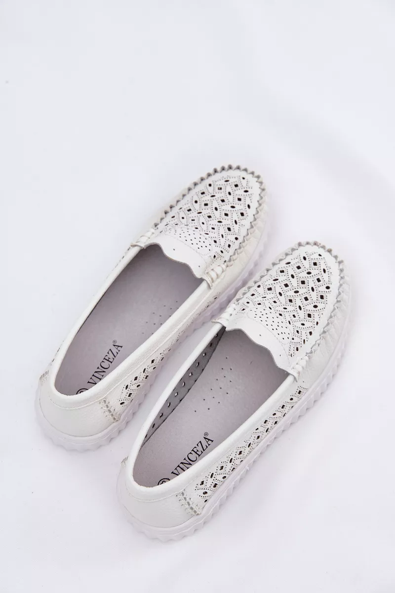 Odiniai moteriški mokasinai su ažūriniu raštu Vinceza 88028 Balti