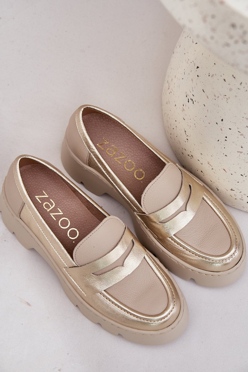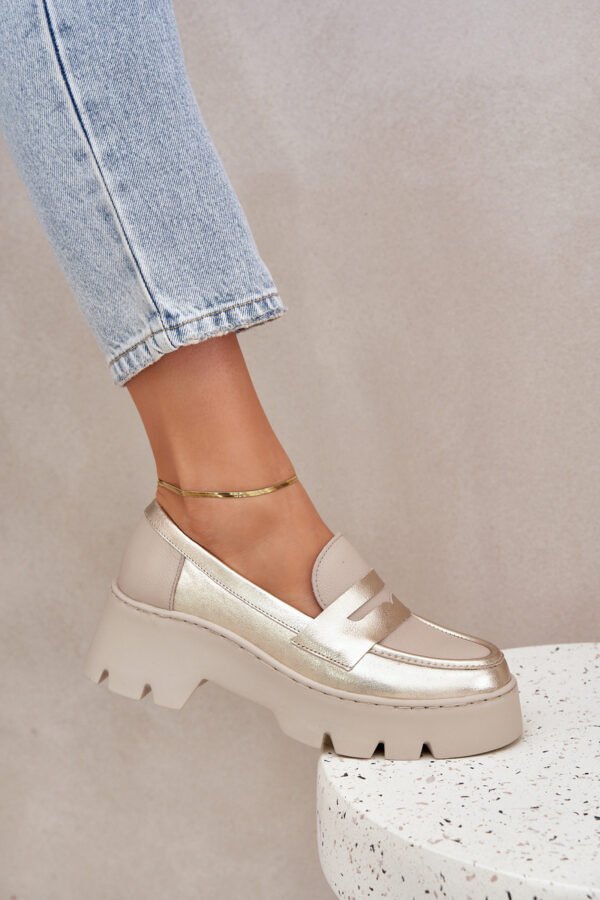 Moteriski mokasinai pagaminti is natūralios odos yra elegantiškas ir stilingas pasiūlymas bet kokiai progai. Ant platformos ir masyvaus, plokscio kulno, jie uztikrina patoguma ir stabiluma visai dienai. Apvalinti priekiai suteikia jiems subtilios charakteristikos, o dekoratyvinis dirzelis su priekyje esancia išpjova suteikia modernumo. Šie mokasinai derina elegancija su patogumu, todėl yra puikus pasirinkimas ivairioms stilizacijoms. Renkantis dydi, prasome vadovautis dydziu lentele.