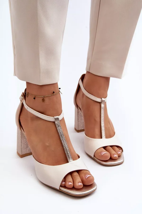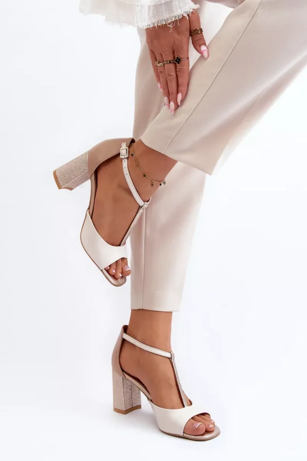 Moteriški sandalai, puikiai tinkantys įvairioms progoms. Pagaminti iš natūralios odos. Atsiduria ant stulpelio formos kulno. Segami reguliuojamu dirželiu su sagtele. Modelis su uždaromu kulnu. Šis modelis tiks prie elegantiškų kelnių, suknelių ir sijonų. Rinkdamiesi dydį, vadovaukitės dydžių lentele.