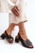 Elegantiški sandalai pagaminti iš natūralios odos. Įmontuoti ant blokinio kulno. Priekyje turi puošybos elementą. Odinis vidpadis užtikrins patogumą naudojimo metu. Šis modelis tiks prie elegantiškų kelnių, sijonų ir suknelių. Būtinai turėtumėte juos turėti! Rinkdamiesi dydį, vadovaukitės dydžių lentele.