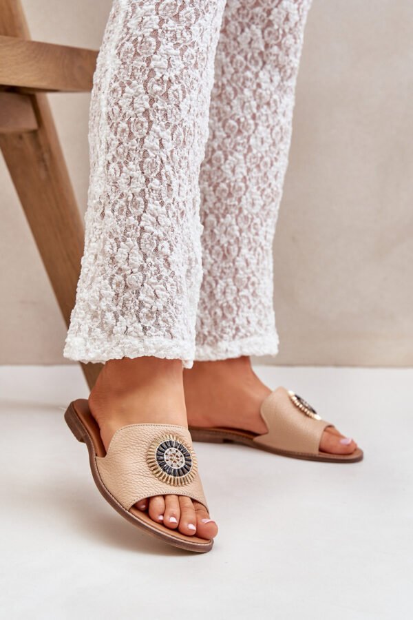 Moteriškos šlepetės, pagamintos iš aukštos kokybės natūralios odos – tai elegancijos ir patogumo derinys. Plokščio kulno dėka jos užtikrina patogumą visą dieną. Subtilus batviršio dizainas suteikia joms ypatingo žavesio ir klasės, todėl jos puikiai tiks tiek prie laisvališko, tiek prie formalesnio stiliaus drabužių. Idealios šiltoms dienoms, jos taps nepakeičiamu Jūsų vasaros suknelių, kelnių ar sijonų aksesuaru. Rinkdamiesi dydį, prašome vadovautis dydžių lentele.