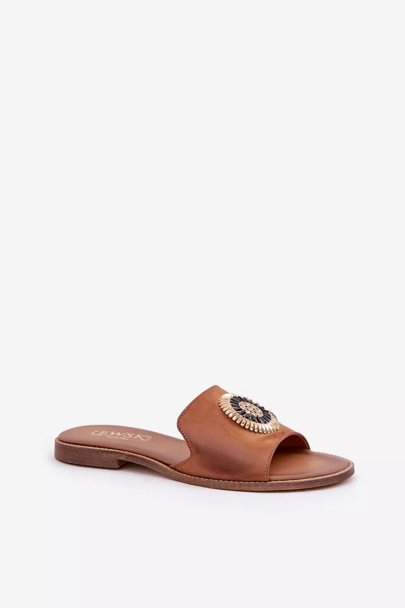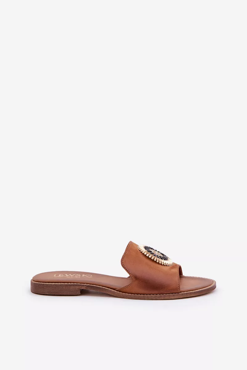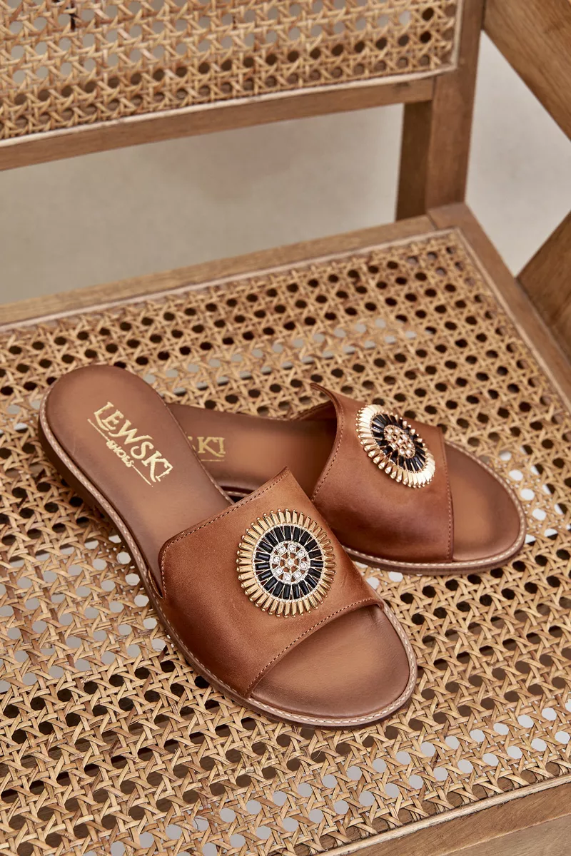 Pagrindinis šlepečių privalumas yra jų aukštos kokybės natūrali oda, kuri užtikrina ilgaamžiškumą ir patogumą. Tiesus padas leidžia pėdai jaustis laisvai, o plokščias kulnas padeda išvengti nuovargio vaikščiojant ilgą laiką. Puošnus papuošimas pabrėžia šių šlepečių prabangą ir suteikia ypatingą akcentą, kurio neturi įprastos šlepetės.