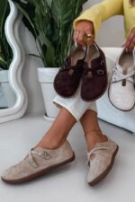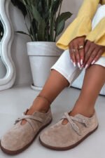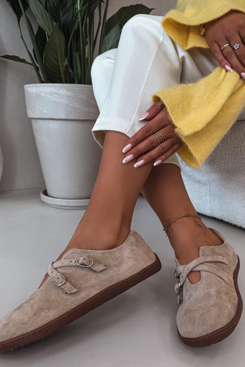 Odiniai suede basutės moterims su dirželiais Zazoo N1271 smėlio spalvos