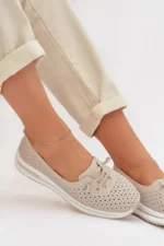Eleganti Moteriškos Odos Mokasinai LR61-7044 Smėlio spalvos