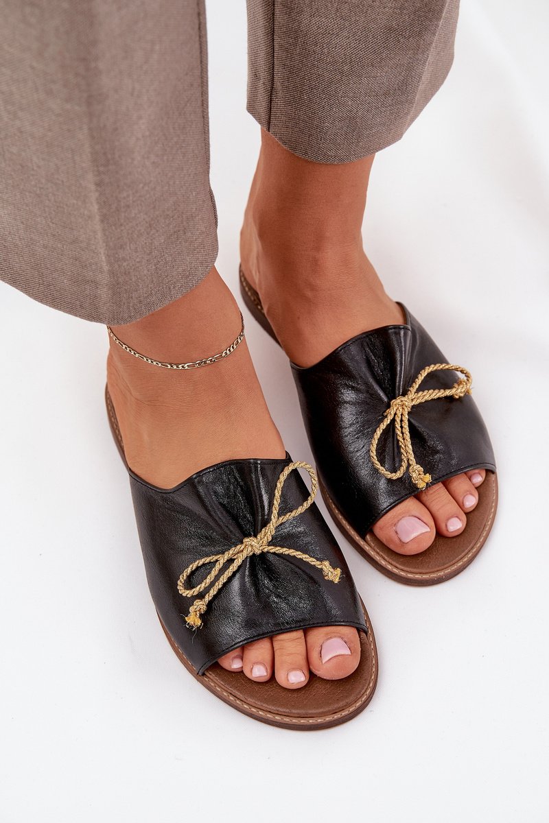 Odos plokščios elegantiškos šlepetės su kaspinu Lewski 3572 Juodos