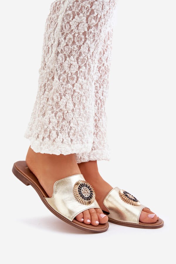 Moteriškos šlepetės, pagamintos iš aukštos kokybės natūralios odos – tai elegancijos ir patogumo derinys. Plokščio kulno dėka jos užtikrina patogumą visą dieną. Subtilus batviršio dizainas suteikia joms ypatingo žavesio ir klasės, todėl jos puikiai tiks tiek prie laisvališko, tiek prie formalesnio stiliaus drabužių. Idealios šiltoms dienoms, jos taps nepakeičiamu Jūsų vasaros suknelių, kelnių ar sijonų aksesuaru. Rinkdamiesi dydį, prašome vadovautis dydžių lentele.