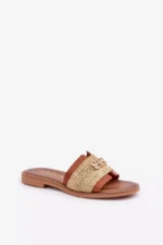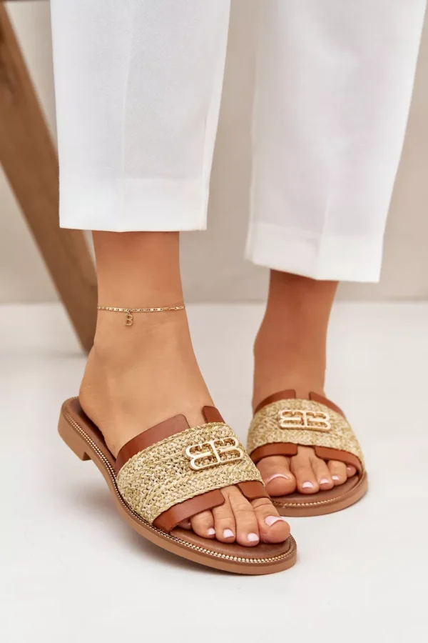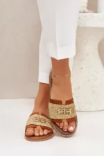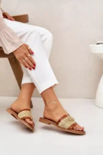 Šios odinės moteriškos šlepetės turi plokščią padą, kuris suteikia stabilumo ir atrodo itin stilingai. Sandalai gaminami iš šiaudinių medžiagų, suteikiančių jiems lengvumo jausmą ir vasarišką išvaizdą, o subtilūs auksiniai akcentai prideda šiek tiek prabangos ir elegantiško spindesio. Jie puikiai tinka atostogoms ar kasdieniams stilingiems deriniams, nes puikia dera su bet kokiu vasariniu drabužiu.