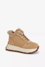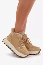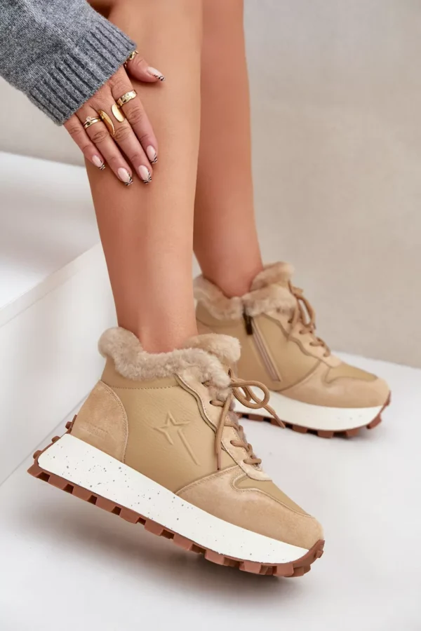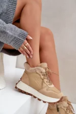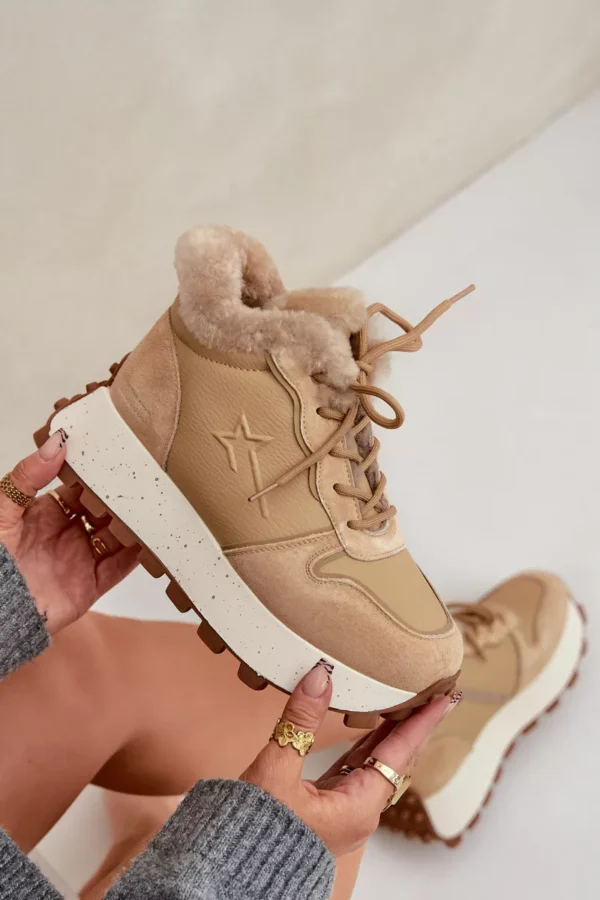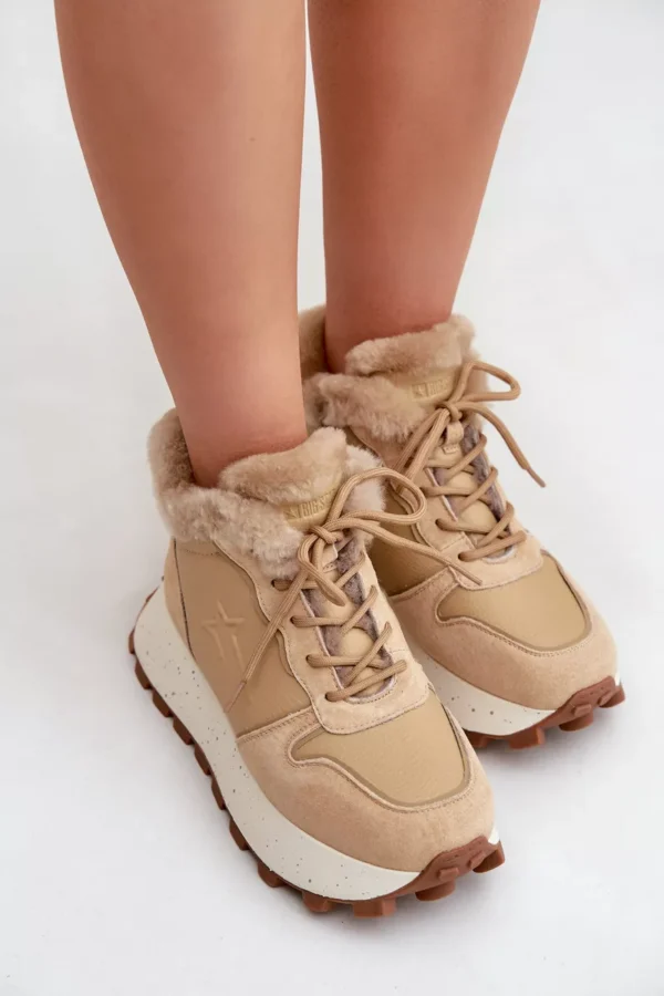 Odos sportiniai bateliai moterims su kailiu ant platformos Big Star OO274A330 smėlio spalvos