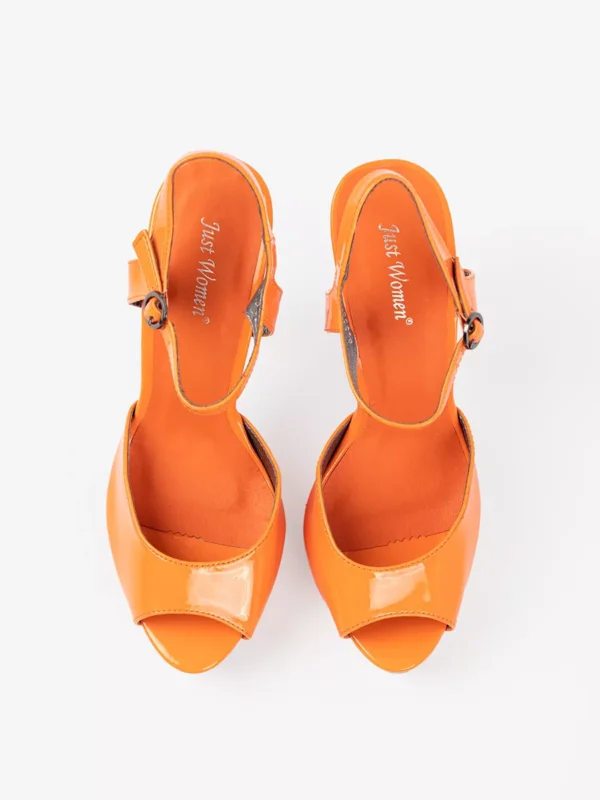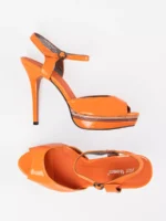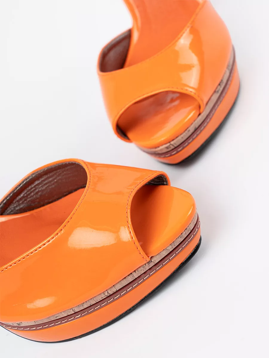 Kiekviena šių aukštakulnių basučių detalė buvo atidžiai suplanuota siekiant sukurti unikalų dizainą, kuris spinduliuoja elegancija ir prabangą. Dėl gaivios oranžinės spalvos, jos tampa puikia detale, galinčia pagyvinti tiek kasdienį, tiek vakarinį jūsų stilių.