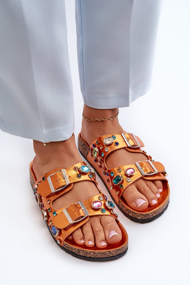 S.Barski firmos šlepetės pagamintos iš eko odos. Papuoštos blizgančiais kristalais, jos suteikia blizgesio bet kokiai stilizacijai. Įmontuotos ant kamštinio pado, jos užtikrina stabilumą ir madingą išvaizdą. Priekyje du reguliuojami dirželiai su sagtimis, kurie garantuoja idealų prigludimą prie pėdos. Tai avalynė, kuri ne tik traukia akį savo išskirtiniu dizainu, bet ir užtikrina dėvėjimo komfortą. Pasirinkdami dydį, vadovaukitės dydžių lentele.