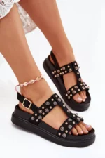 Moteriški platforminiai sandalai yra puikus pasirinkimas šiltoms dienoms. Užsegami sagtimi su reguliuojamu diržu, jie leidžia tobulai pritaikyti prie pėdos. Subtilūs papuošimai suteikia jiems unikalų charakterį. Puikiai tinka kasdieniams stiliams. Renkantis dydį, vadovaukitės dydžių lentele.