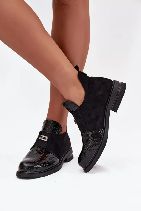 Vinceza moteriški bateliai yra stilingas ir patogus pasirinkimas, puikiai tinkantis vėsesnėms dienoms. Pagaminti iš ekologiškos lakuotos odos ir minkštos ekologiškos odos, jie pasižymi modernia išvaizda ir įdomiu tekstūrų kontrastu, kuris suteikia jiems unikalų charakterį. Slip-on modelis su žemu viršumi yra ypač praktiškas – jį lengva greitai užsidėti ir nusiimti, todėl jis puikiai tinka kasdieniam naudojimui. Žemas kulnas garantuoja patogumą ir stabilumą, todėl batai idealiai tinka ilgesniam nešiojimui. Subtilus dekoratyvinis akcentas priekyje suteikia visam batui elegantiškumo. Vidinė dalis yra izoliuota, todėl užtikrina šilumą ir komfortą rudenį ir žiemą. Šie batai puikiai tinka tiek kasdieniam, tiek elegantiškam aprangos stiliui. Renkantis dydį, prašome remtis dydžių lentele.
