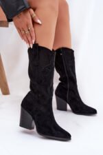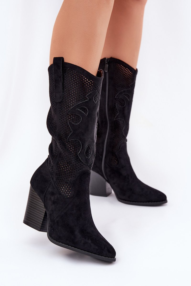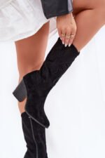 Moteriški kaubojiški batai, “S.Barski” prekės ženklo. Pagaminti iš eko zomšo, derinantys eleganciją su originaliu stiliumi. Ažūrinis batviršis suteikia lengvumo ir charakterio. Migdoliniai aulinukai. Užsegami užtrauktuku. Batviršis siekia iki pusės blauzdos. Šiuos stilingus batus galite naudoti laisvalaikio ir boho stiliaus deriniams. Pasirinkdami dydį, vadovaukitės dydžių lentele.