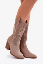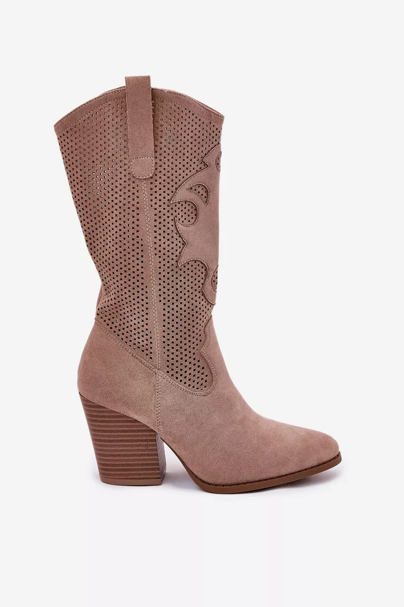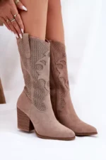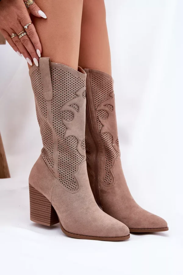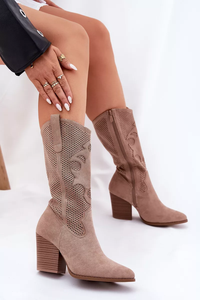 Nuostabūs S.Barski moteriški dupi kovbojų batai, kurie derina eleganciją ir unikalų stilių. Šie batai gaminami iš aplinkai draugiškos zomšos, suteikiantys ne tik stiliaus, bet ir aplinkosaugos atsakingumo pojūtį. Šoninės išpjaustytos detalės prideda lengvumo jausmą ir savitumą. Mandamiento formos nosis suteikia batams rafinuotą išvaizdą. Batai užsegami užtrauktuku, o jų aukšti šonai tęsiasi iki pusės blauzdos.