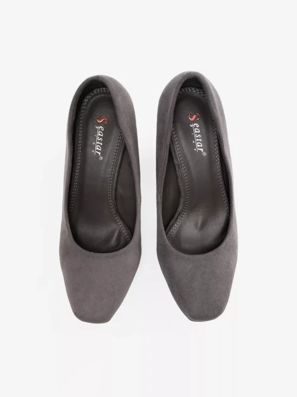 Elegantiški ir stilingi “Suede Pumps on Column Heel in Grey” bateliai yra tobulas pasirinkimas moterims, ieškančioms subtilumo ir komforto. Šie pilki bateliai su stulpelio formos kulnu puikiai derės prie įvairiausių drabužių derinukų, tiek formalių, tiek kasdienių, suteikdami jiems elegancijos.