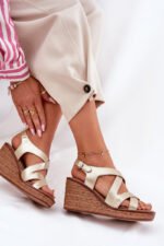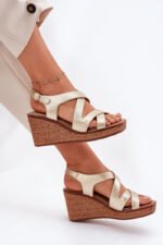 Moterims skirti eko odos sandalai – tai elegancijos ir patogumo derinys. Įmontuotas pleišto tipo kulnas su pynimo imitacija. Priekyje esantys susipynę dirželiai suteikia unikalumo, o sagties užsegimas leidžia idealiai priderinti prie pėdos. Odinis, minkštas vidpadis garantuoja patogumą visą dieną. Šie sandalai bus puikus pasirinkimas vasaros dienoms, sujungiantys madingą išvaizdą su funkcionalumu. Rinkdamiesi dydį, prašome vadovautis dydžių lentele.