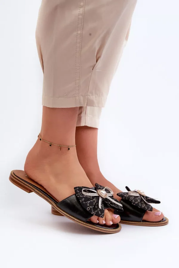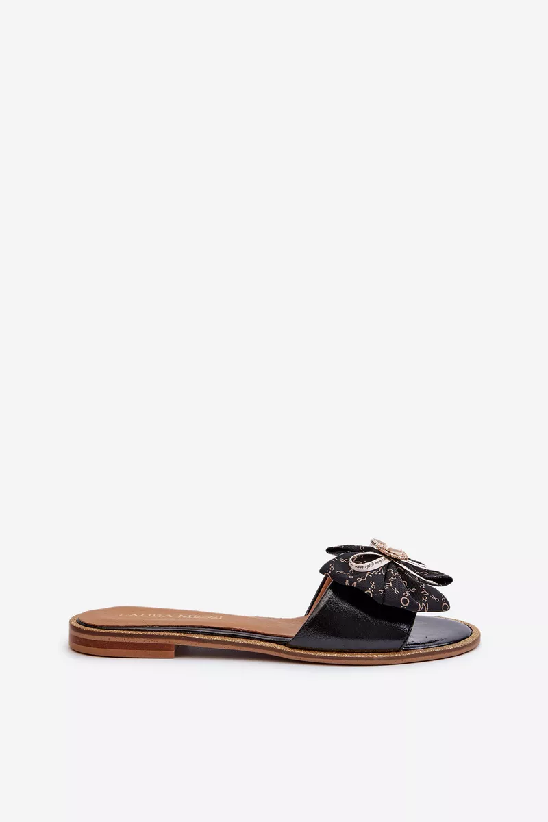 Šios elegantiškos moteriškos Laura Messi 2791 juodos odinės šlepetės kiekvieną žingsnį paverčia stilingu prabangos pojūčiu. Iš aukštos kokybės natūralios odos pagamintos šlepetės užtikrina ilgaamžiškumą ir patogumą, o jų subtiliai dekoruota kaspinu detalė suteikia ypatingą žavesį bet kokiai aprangai.