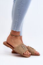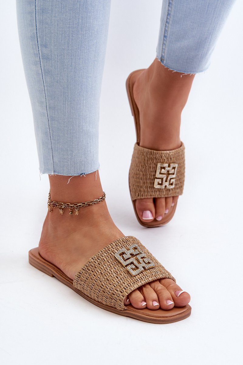 Moteriškos plokščiapadės šlepetės su pynimu. Priekyje esantis papuošalas ne tik suteikia elegancijos, bet ir daro jas puikiu pasirinkimu daugeliui progų, nuo poilsinio pasivaikščiojimo paplūdimiu iki vasaros susitikimų su draugais. Renkantis dydį, prašome vadovautis dydžių lentele.
