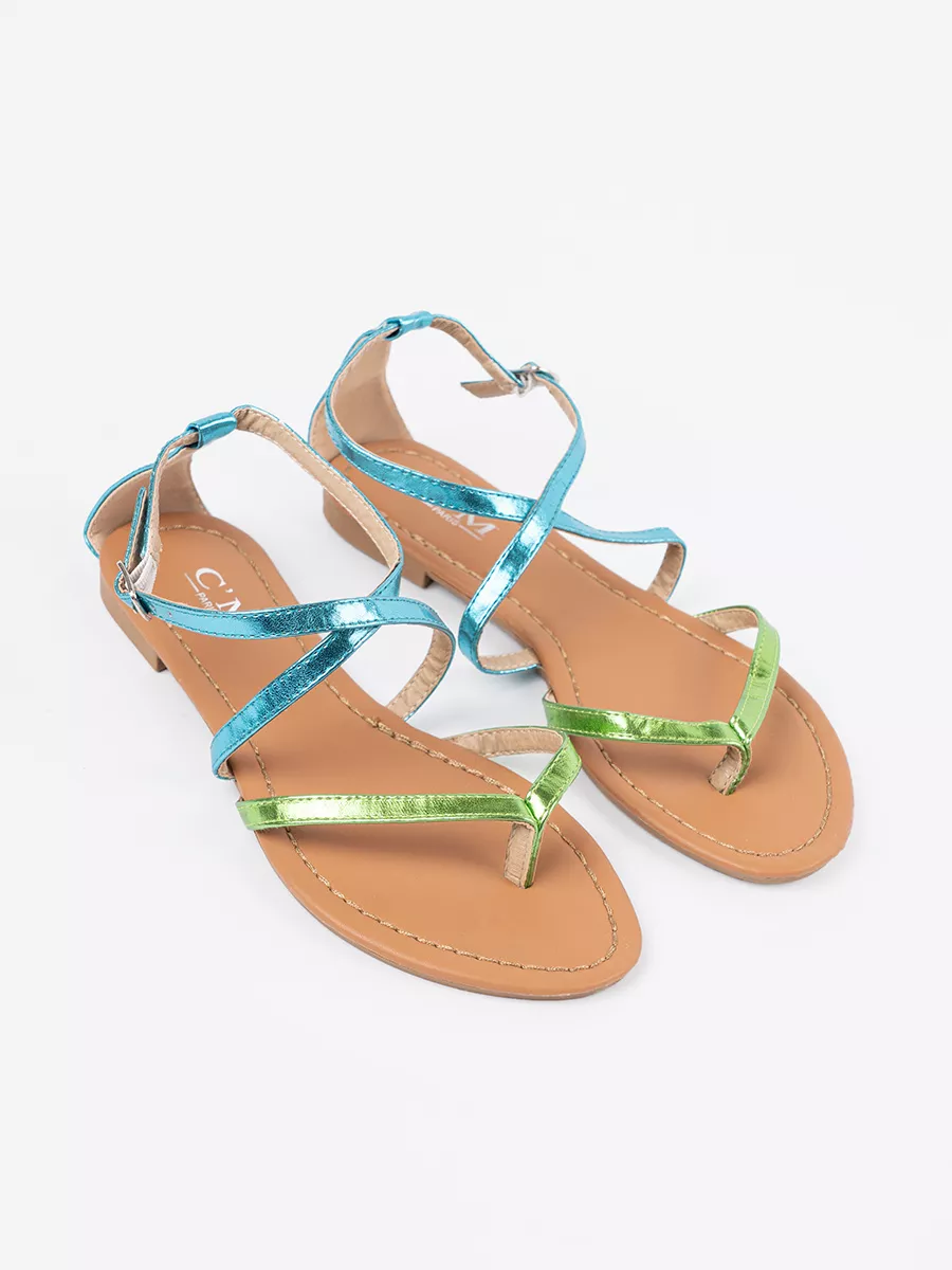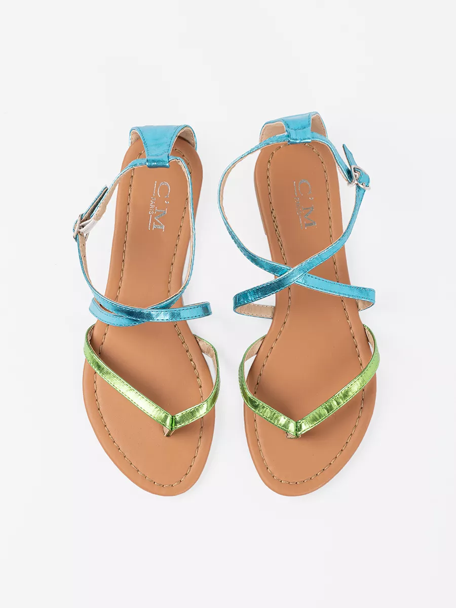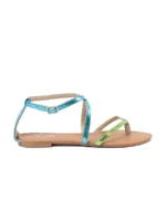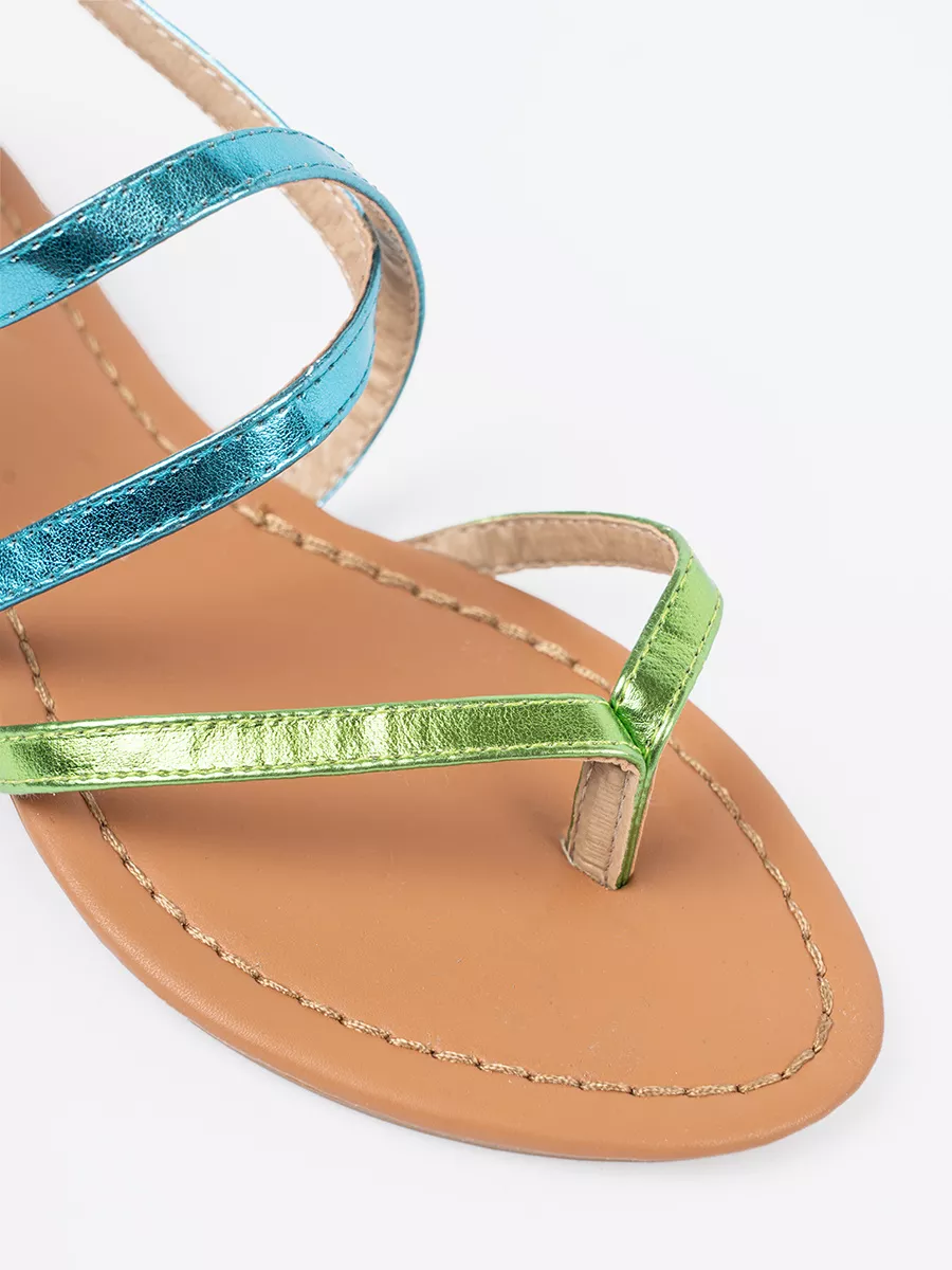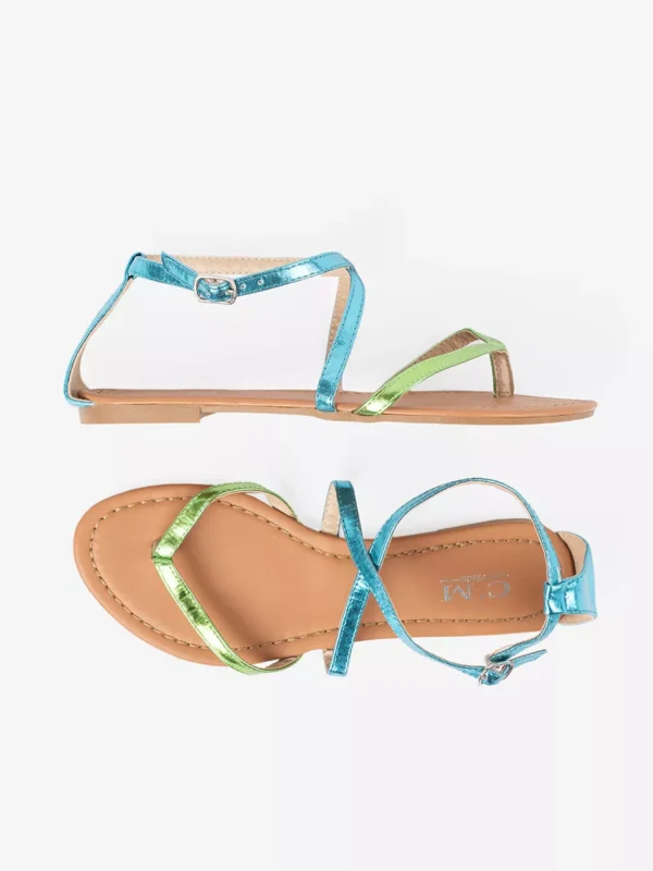 Žemieji sandalai su žaliomis-melsvomis juostelėmis
