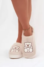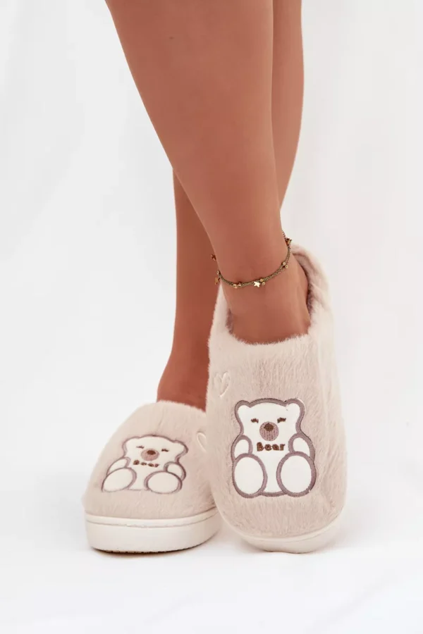 Pliūšiniai naminiai šlepetės su meškučiu motyvai