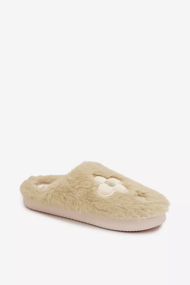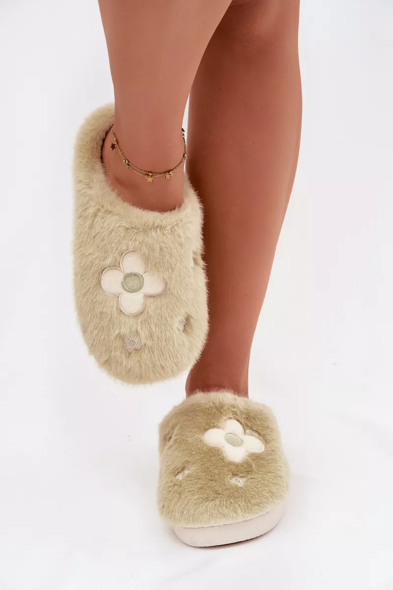 Pūkštiniai pantofliai su gėlėmis pastelinių spalvų