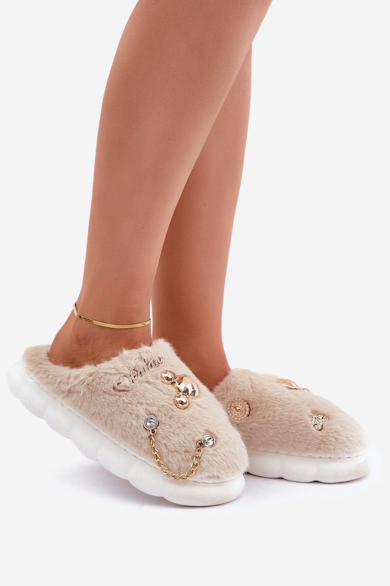 Stilingos moteriškos kailinės šlepetės su madingomis sagtimis – puikus pasirinkimas šaltoms dienoms. Pagamintos iš minkštos ir šiltos medžiagos, jos užtikrina išskirtinį dėvėjimo komfortą. Idealiai tinka atsipalaiduoti namuose. Galimi nežymūs padų spalvos pakitimai!! Renkantis dydį, prašome vadovautis dydžių lentele.