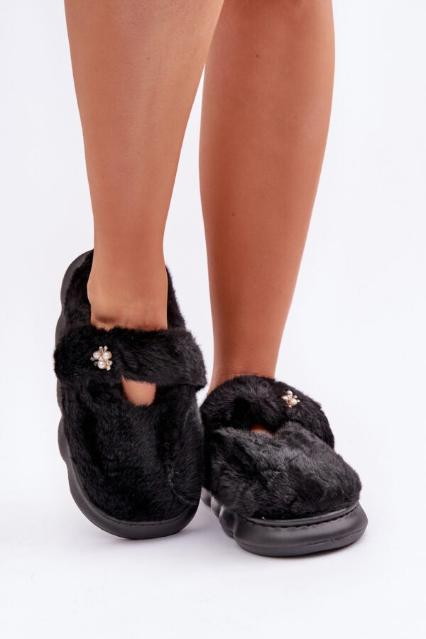 Apatiniai moteriški šlepetukai su kailiu. Modelis puoštas subtilia, mažyte sage, suteikiančia elegancijos. Stabilizuojantis dirželis gale ne tik padidina dėvėjimo patogumą, bet ir užtikrina geresnį šlepetukų prigludimą prie pėdos. Žavūs ir funkcionalūs, puikiai tinka kaip namų relaksacijos elementas, jungiantis stilių su praktiškumu. Rinkdamiesi dydį, prašome vadovautis dydžių lentele.