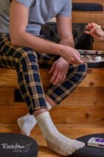 Šios „Rainbow White Chocolate“ kojinės pasipuošusios unikaliu dizainu – spalvingomis juostomis, primenančiomis šokoladą. Šis dizainas suteikia ne tik žaismingumo, bet ir rafinuotumo, tinkantis tiek kasdieniam, tiek šventiniam įvaizdžiui. Kojinės yra pritaikytos visiems, kurie ieško smulkaus, bet ryškaus akcento savo garderobe.