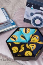Kojinės „Rainbow Emoticons Smiley Sadness Brainy” yra unikalus produktas, skirtas tiems, kurie nori išreikšti savo emocijas ir turėti šmaikštų stilių. Šios kojinės su emocijomis nuo šypsenų iki liūdesio, puikiai tinka kiekvienai nuotaikai, kurią galite jausti. Pakuotėje yra trys poros, kurios derinamos pagal jūsų emocinį atspalvį.