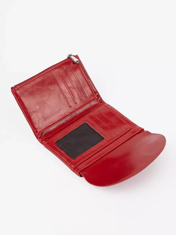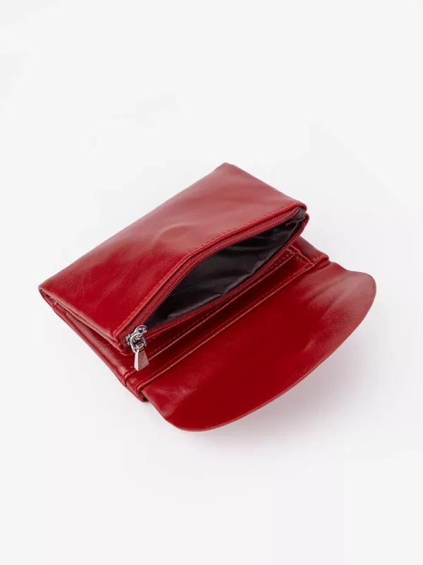 Maža raudona moteriška piniginė puikiai telpa į mažesnes rankines bei kišenes, tačiau tuo pačiu metu garantuoja pakankamai vietos laikyti korteles, grynus pinigus ir monetas. Ji turi kelias kortelių kišenes bei atskirą skyrelį monetoms, leidžiančius patogiai organizuoti ir greitai rasti tai, ko jums reikia, kai esate kelyje.