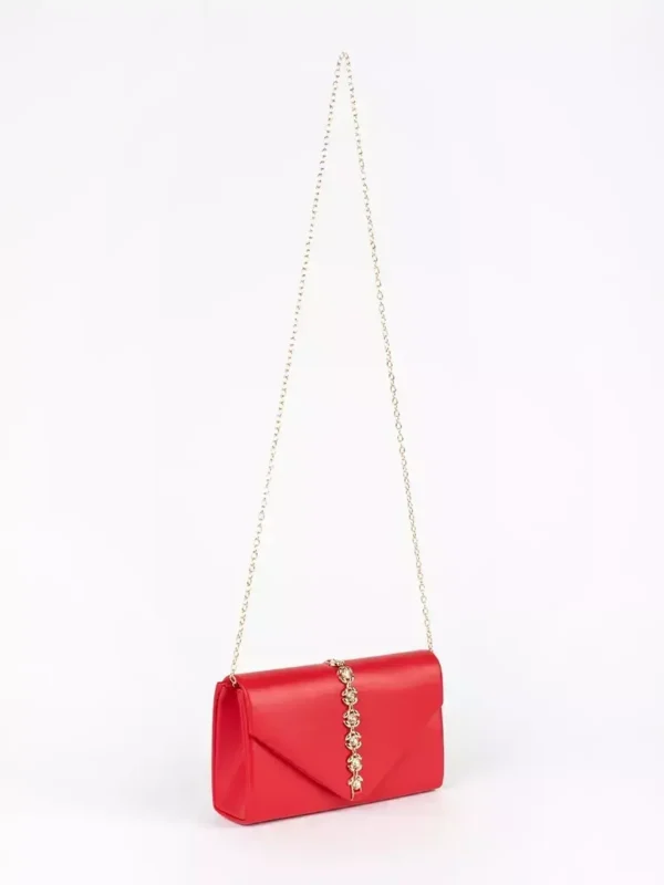 Raudona sankabos rankinė su dekoratyviniais kristalais
