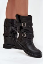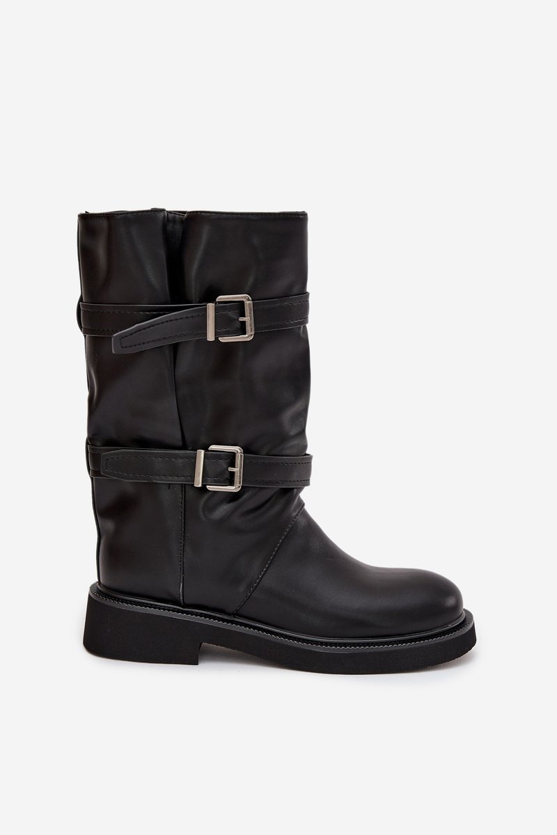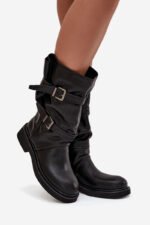 Damoskų batai iš eko odos yra madingas ir patogus pasirinkimas vėsesnėms dienoms. Pagaminti iš eko odos. Ant plokščio kulno, jie užtikrina patogumą visą dieną, o praktiško, įsikišamo dizaino dėka apsiauti batus yra greita ir patogu. Modelį išskiria raukta, iki pusės blauzdos siekianti aulinė dalis. Visumą užbaigia dekoratyvinės juostelės su sagtimis, suteikiančios madingą, šiek tiek roko akcentą. Šie batai puikiai tiks tiek kasdienėms, laisvalaikio aprangoms su kelnėmis ar leginsais, tiek derinant su suknele ar sijonu. Pasirinkdami dydį, atkreipkite dėmesį į dydžių lentelę.