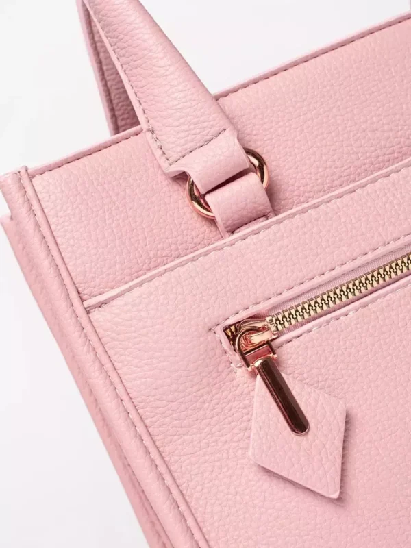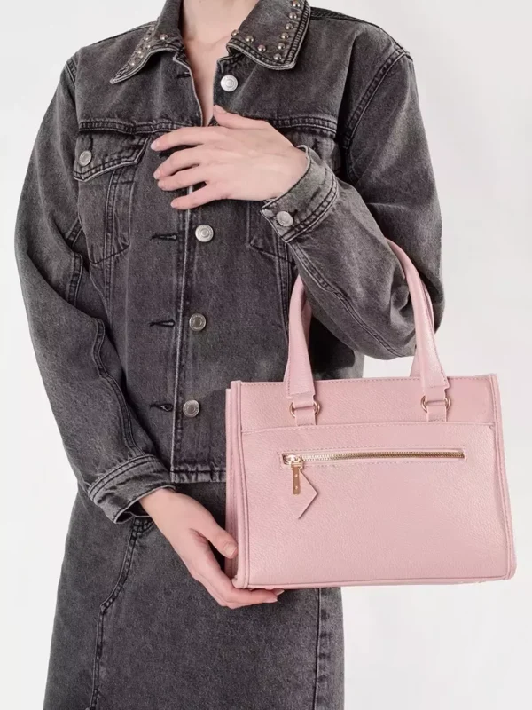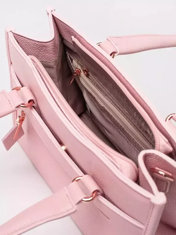 Šis šviesiai rausvas satčelinės tipo rankinukas su dekoratyviniu užtrauktuku yra ne tik funkcionalus, bet ir stilingas aksesuaras, papildantis jūsų kasdienį įvaizdį. Pagamintas iš aukštos kokybės sintetinės odos, šis rankinukas idealiai tinka tiek darbui, tiek laisvalaikiui. Švelnus šviesiai rausvas atspalvis suteikia elegancijos ir moteriškumo bet kuriai aprangai.
