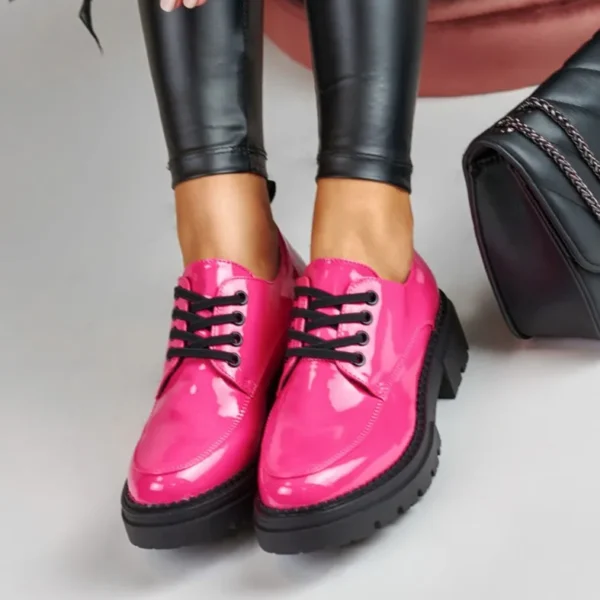 Rožiniai lakuoti auliniai batai su raišteliais