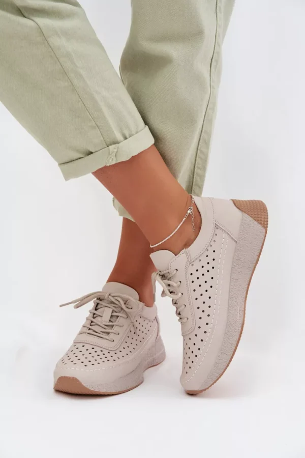 Sergio Leone moteriški sportiniai bateliai, pagaminti iš natūralios odos, yra puikus komforto ir stiliaus derinys. Akmens viršutinė dalis užtikrina kvėpavimą ir suteikia modeliui subtilumo, o klasikinis raištelis leidžia puikiai pritaikyti batelius. Šie universalūs sportiniai bateliai puikiai papildo kasdienius drabužius, derindami funkcionalumą ir madingą išvaizdą. Renkantis dydį, prašome remtis dydžių lentele.