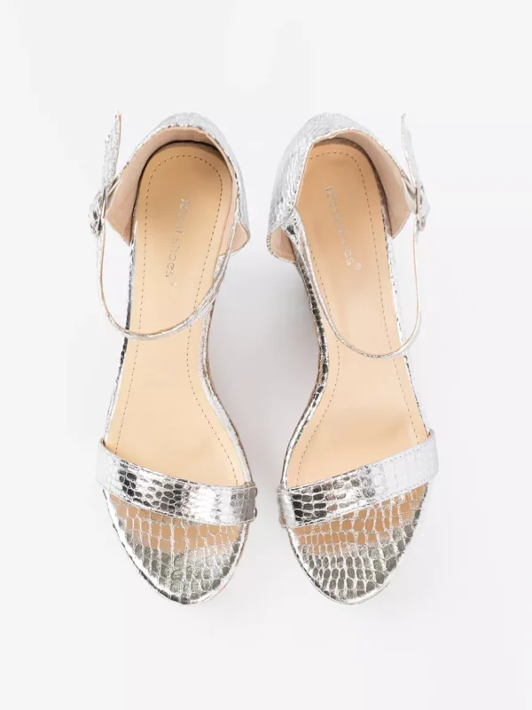 Sidabrinės platformos basutės sukamufliuotu kamščiu puikiai papildys jūsų vasaros garderobą. Šios elegantiškos ir stilingos basutės sukuria subtilų ir moterišką išvaizdą, todėl puikiai tiks tiek kasdieniam dėvėjimui, tiek ypatingoms progoms. Sidabrinis viršutinis diržas užtikrina tvirtą sukabinimą su pėda, prisitaikydamas prie įvairių pėdų formų.