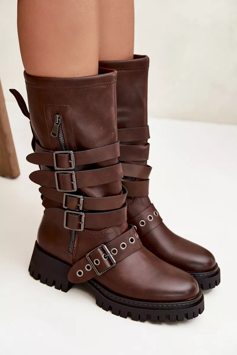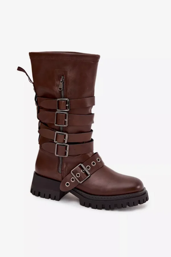 Šilti moteriški batai su dirželiais ir sagtlemis, rudos spalvos Ivaline